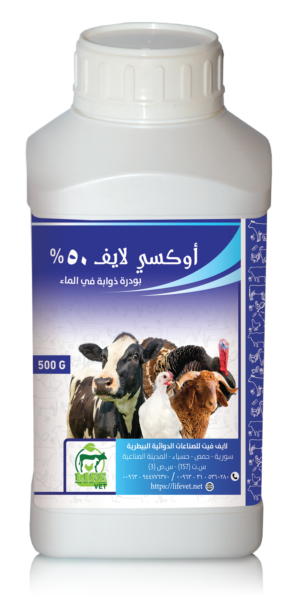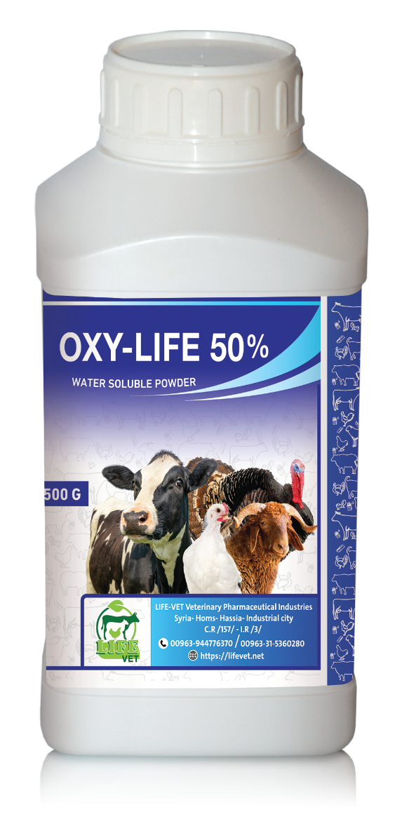 يستخدم أوكسي لايف 50 % عند الدواجن، العجول والحملان لعلاج التهابات الجهاز الهضمي والجهاز التنفسي التي تسببها البكتيريا الحساسة للأوكسي تتراسيكلين مثل البورديتيلا، العصوية، الوتدية، الكامبيلوباكتر، الإشريكية القولونية، الهيموفيلوس، الباستوريلا، السالمونيلا، الميكوبلازما، الريكتسيا، الكلاميديا، والمكورات العنقودية والعقدية