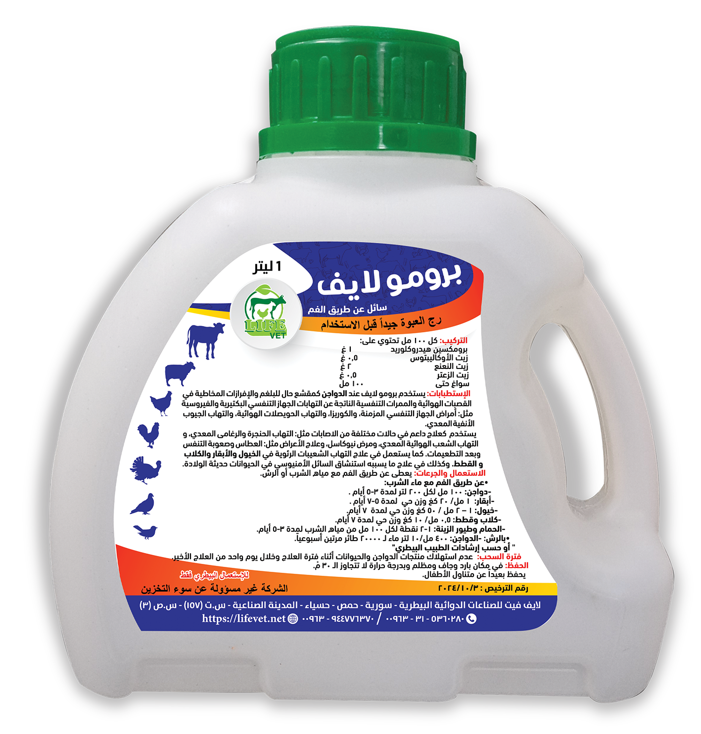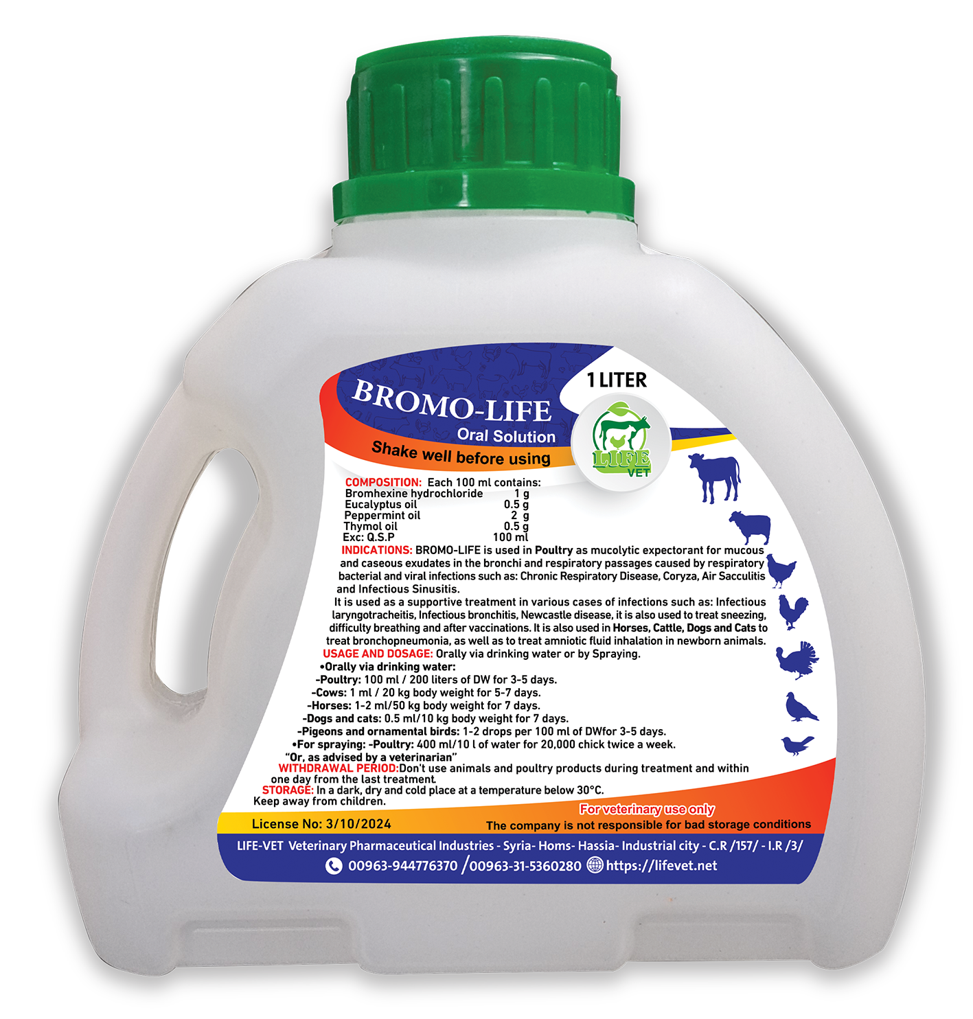 يستخدم برومو لايف عند الدواجن والمجترات كمقشع حال للبلغم والإفرازات المخاطية في القصبات الهوائية والممرات التنفسية الناتجة عن التهابات الجهاز التنفسي البكتيرية والفيروسية مثل: أمراض الجهاز التنفسي المزمنة، والكوريزا، والتهاب الحويصلات الهوائية، والتهاب الجيوب الأنفية المعدي.