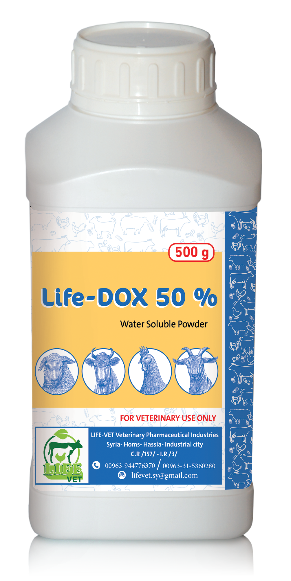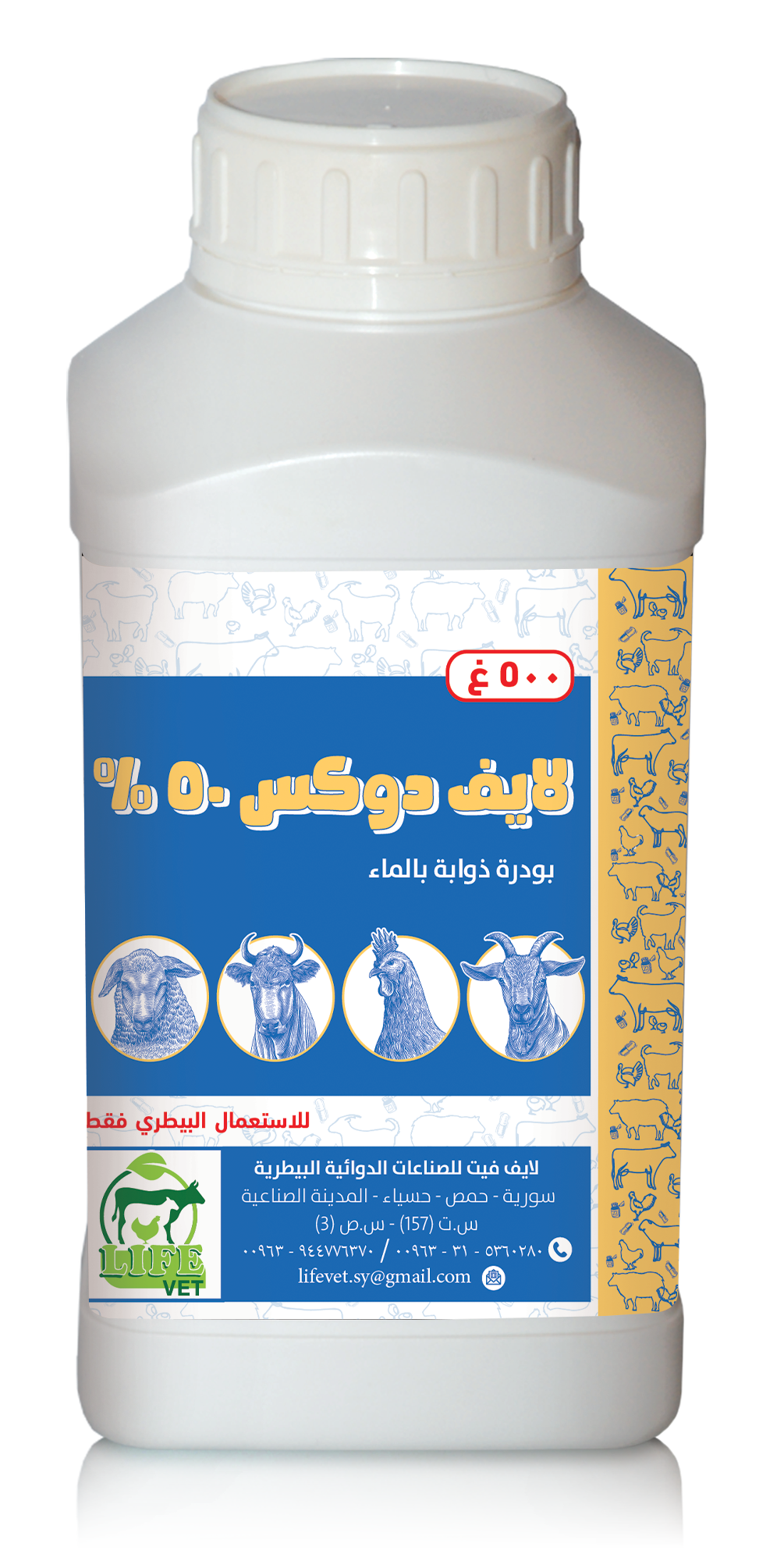 يعتبر لايف دوكس 50% مضاد حيوي واسع الطيف، يستخدم عند الدواجن، العجول،الحملان والماعز لعلاج أمراض الجهاز التنفسي والهضمي التي تسببها جراثيم حساسة للدوكسي سايكلين مثل الايكولاي، الكامبيلوباكتر، الكلاميديا، المايكوبلازما، الريكتيسا، الباستوريلا، السالمونيلا ، الكلورستريديوم، والمكورات العنقودية والعقدية